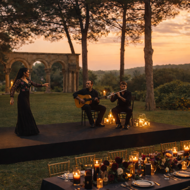 Creamos experiencias flamencas de lujo y espectáculos de flamenco exclusivos para bodas, eventos privados y celebraciones de alto nivel en Barcelona, Sitges, la Costa Brava y toda España.